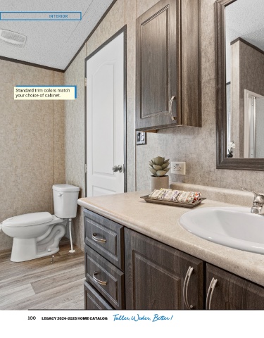 INTERIOR Standard trim colors match your choice of cabinet. er, Wider, Be tt er ! 100 LEGACY 2024-2025 HOME CATALOG Taller, Wider, Better ! T all