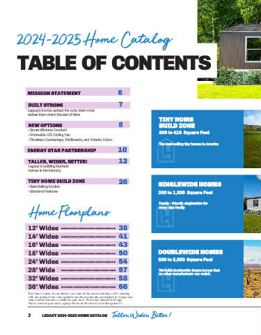 2 2 LEGACY 2024-2025 HOME CATALOG Taller, Wider, Better !