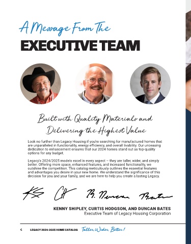 4 4 LEGACY 2024-2025 HOME CATALOG Taller, Wider, Better !