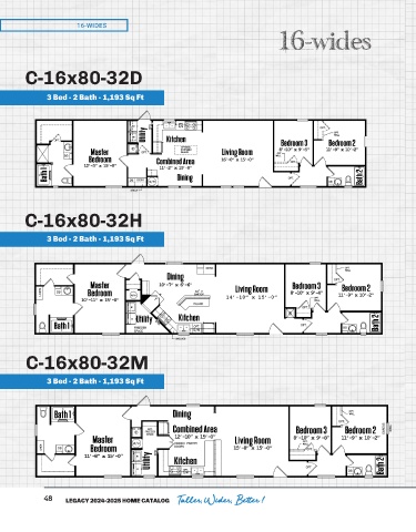 16-WIDES 16-wides C-16x80-32D 3 Bed - 2 Bath - 1,193 Sq Ft C-16x80-32H 3 Bed - 2 Bath - 1,193 Sq Ft C-16x80-32M 3 Bed - 2 Bath - 1,193 Sq Ft 48 LEGACY 2024-2025 HOME CATALOG Taller, Wider, Better ! tt er ! er, Wider, Be T all