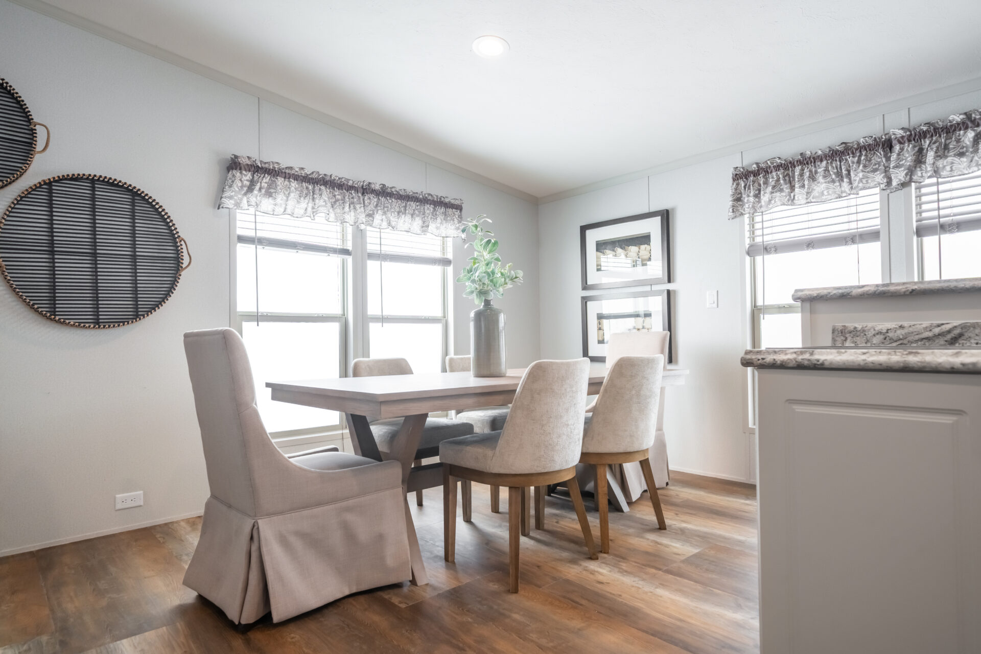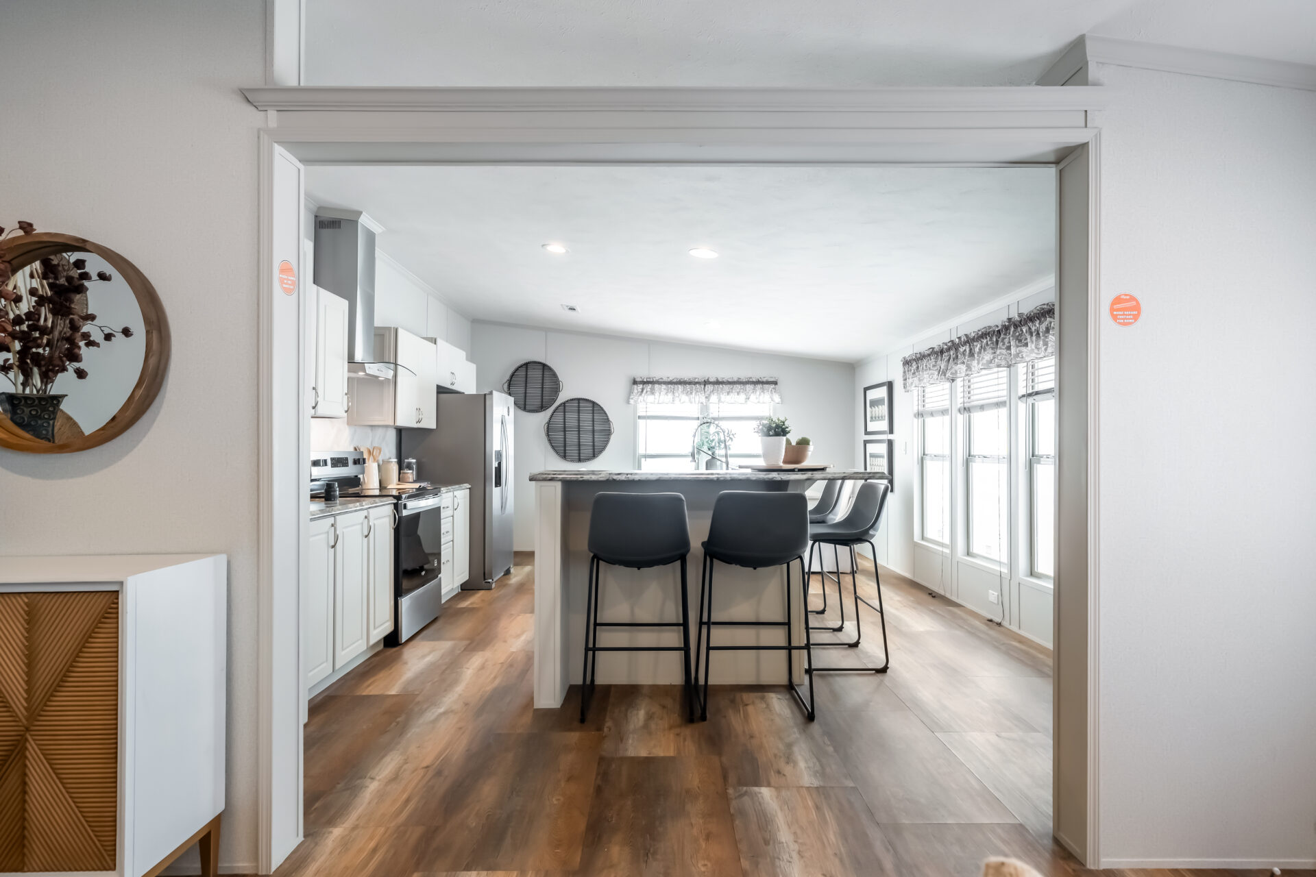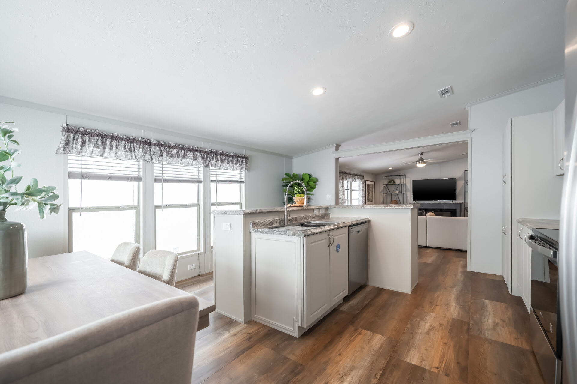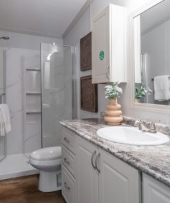 Elevate your living experience with vaulted ceilings throughout our homes, all thanks to a premium 3/12 roof pitch for doublewides and a sleek 4/12 roof pitch for singlewides. Not only does this safeguard your shingles, but it also amplifies the feeling of spaciousness, ensuring no flat ceilings in any home we craft.